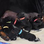 Our puppies are black and mahogany. Colors will vary depending on the parent dogs.