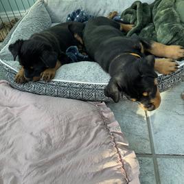 Jerry and Katie were great to work with . They were very knowledgeable and responsive. The kennels were very clean. They supplied us with a binder filled with pictures, vet records, and family tree . We couldn’t ask for anything more. Vuk is a beautiful puppy . He’s smart , very good temperament like his parents , very trainable. He loves to tug and get his naps in! If anyone is looking for a Rottie and want a great experience, then look no further, Sharp ridge is your place!