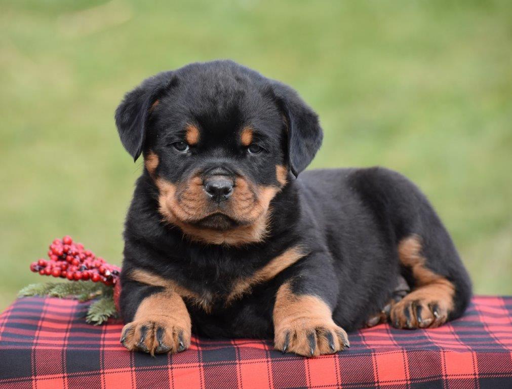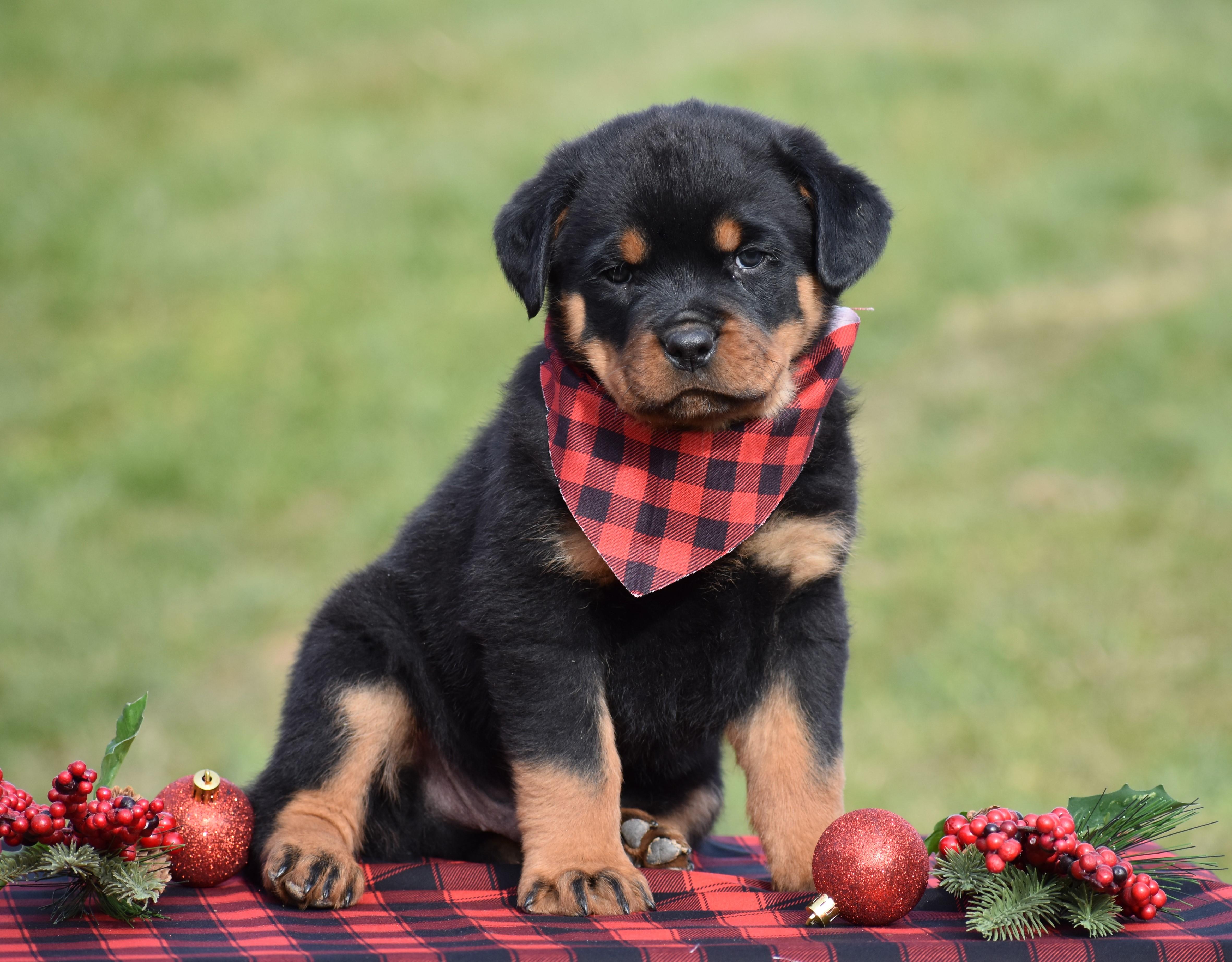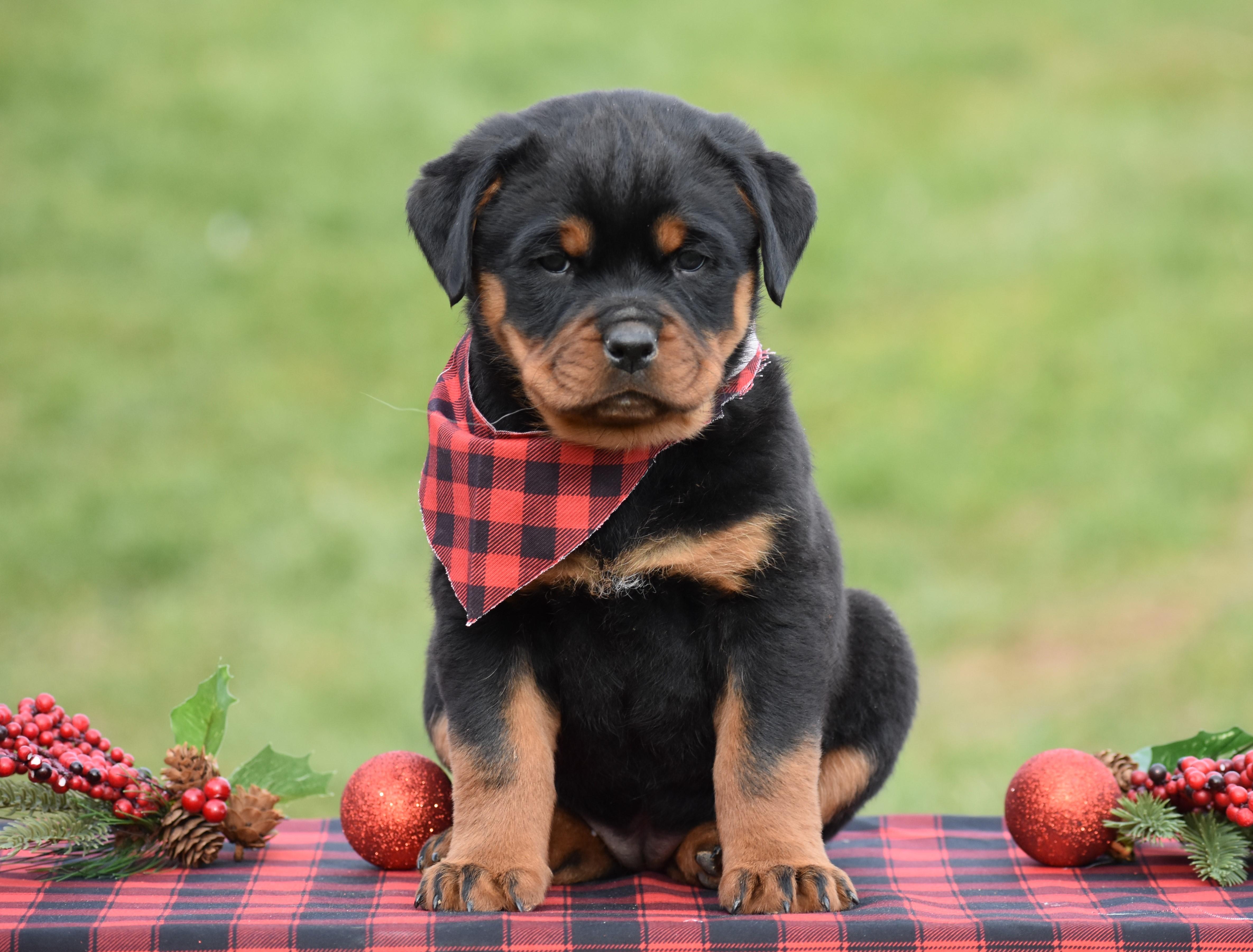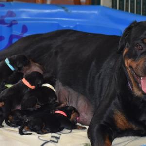 Jerry and Katie were a joy to work with. You can see the love and respect they have for the breed. Their kennel is clean, the dogs are well kept, happy, and friendly. If ever I desire another Rottie in the future, I will DEFINITELY purchase from them again!