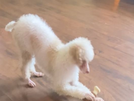 Our lovely poodle is easy to train and caught on to potty in pans so easily and it took just 1 day for her to learn to sit and lay down and walk on leash first time. I would buy another poodle from Susan because she is so caring. We love our Domino. We actually drove from Virginia to Dallas to get her. Susan was so generous with supplies and gifts for our puppy’s trip home and her easy transition. We recommend Susan and her puppies. Thank you Susan!