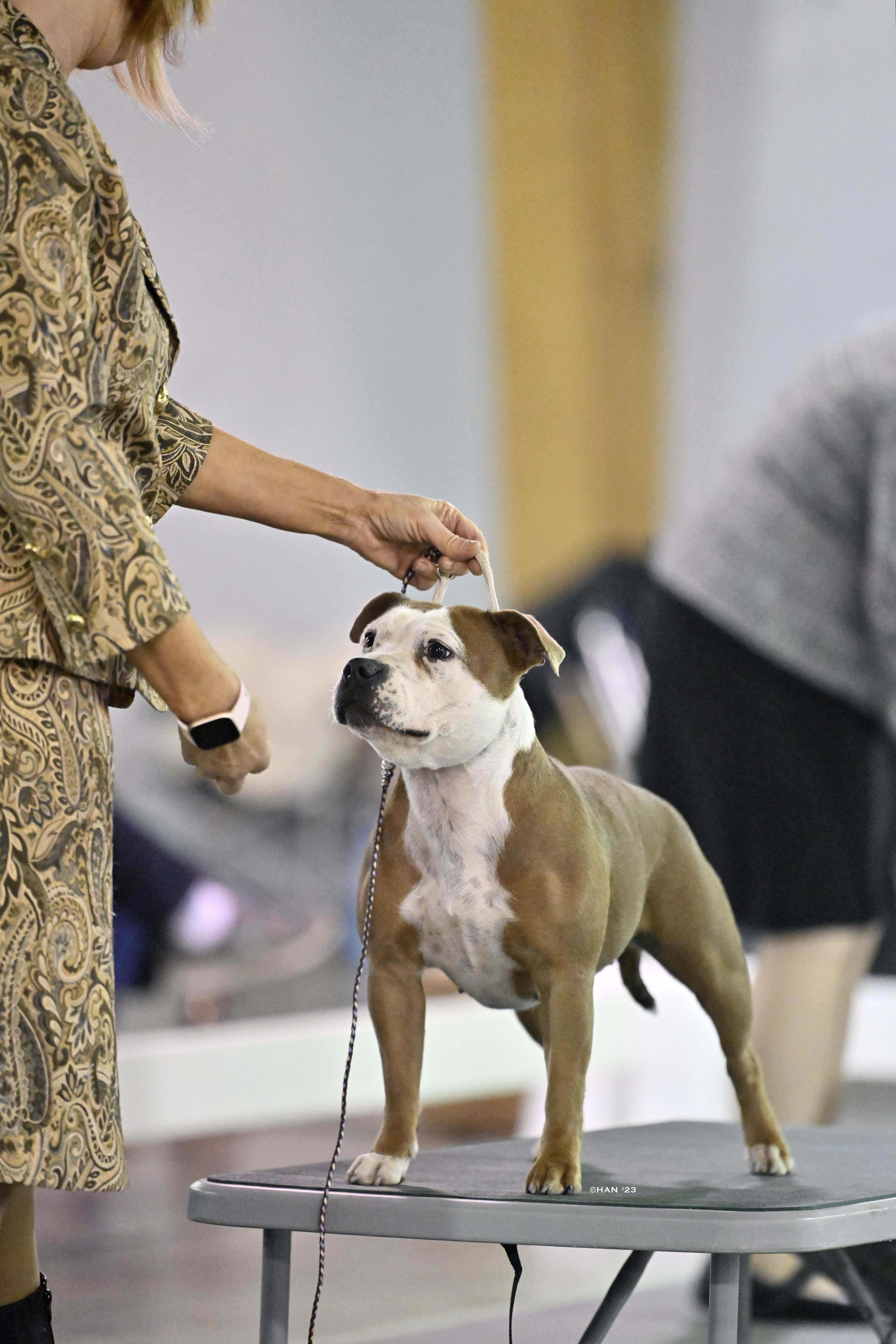 Asher is a male Staffordshire Bull Terrier. Carefully selected as a great representative of his breed, Corrinne decided to make him part of their program. Corrinne has passed Good Dog’s screening process, which involved a review of their breeding practices, environment, and the mental and physical health of their dogs.