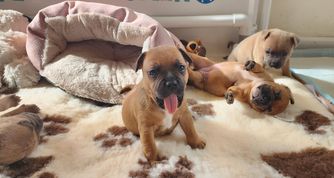 Dasiy is a female Staffordshire Bull Terrier. Carefully selected as a great representative of her breed, Corrinne decided to make her part of their program. Corrinne has passed Good Dog’s screening process, which involved a review of their breeding practices, environment, and the mental and physical health of their dogs.