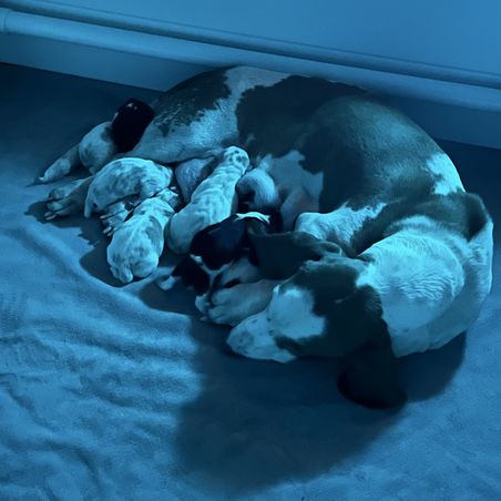 8 girls and 2 boys! 40 healthy paws all nestled in for the night! They got to share their birthday with their grandma who started this crazy thing we do.. our Roo!