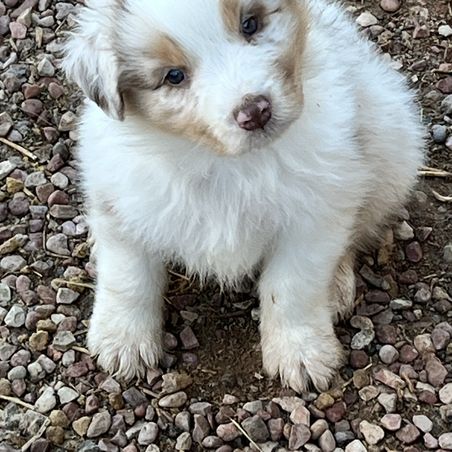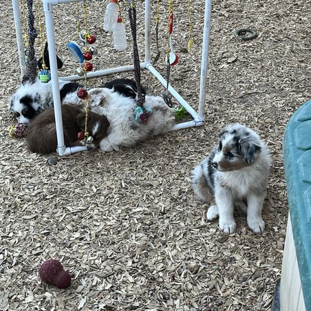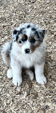Our Miniature American Shepherd puppies include red tri-color, black tri, red merle, and blue merle. Australian Shepherd puppies include red merle, blue merle, black tri-color, and red tri-color. Colors will vary depending on the parent dogs.