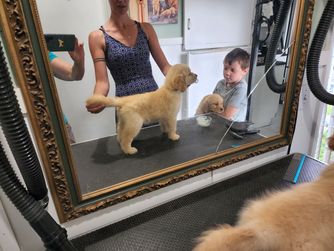 Coco is a female Golden Retriever. Carefully selected as a great representative of her breed, Amanda decided to make her part of their program. Amanda has passed Good Dog’s screening process, which involved a review of their breeding practices, environment, and the mental and physical health of their dogs.