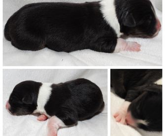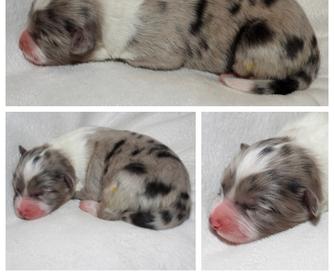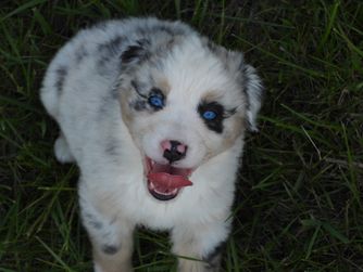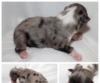Our puppies include red merle, blue merle, black tri-color, and red tri-color. Colors will vary depending on the parent dogs.