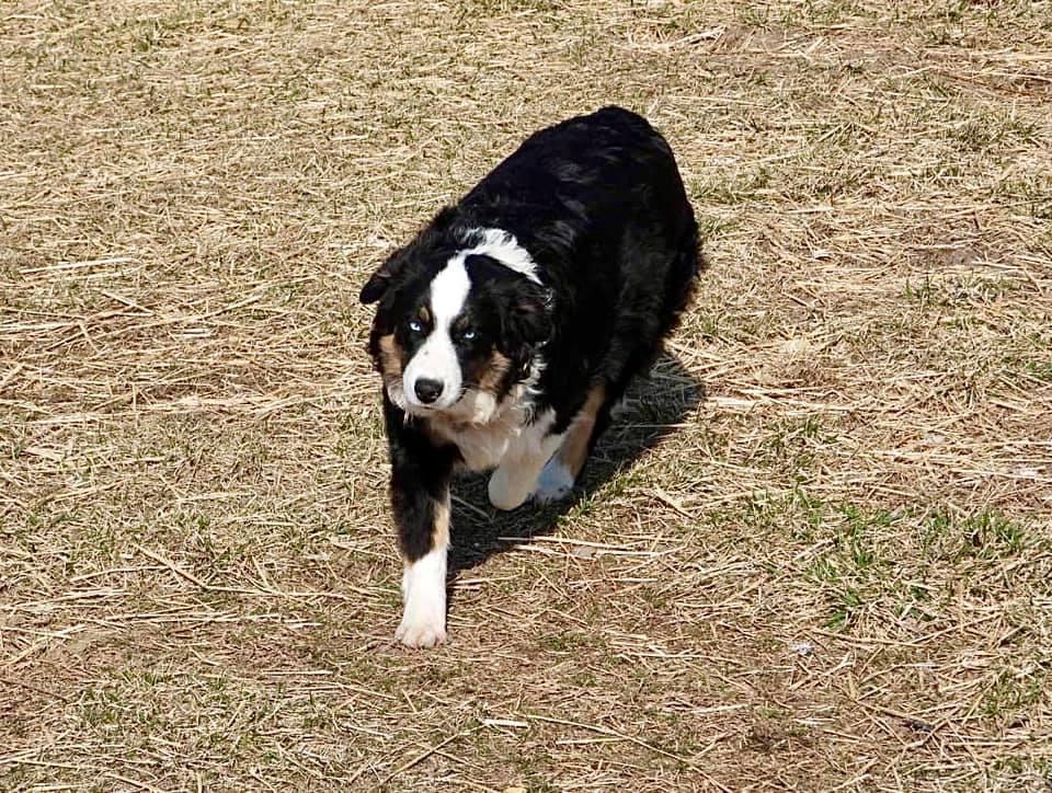 She’s a very active girl, runs and plays with the other dogs and does like to work with the goats, but she prefers to be with her mom the most. She loves to work and loves to fetch. She is so funny and quirky, sometimes she leaps like a deer when she’s excited fetching a toy.