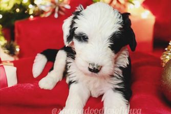 As a child, we bred a few litters. I started breeding Sheepadoodles by whelping for a friend and fell in love with the breed.