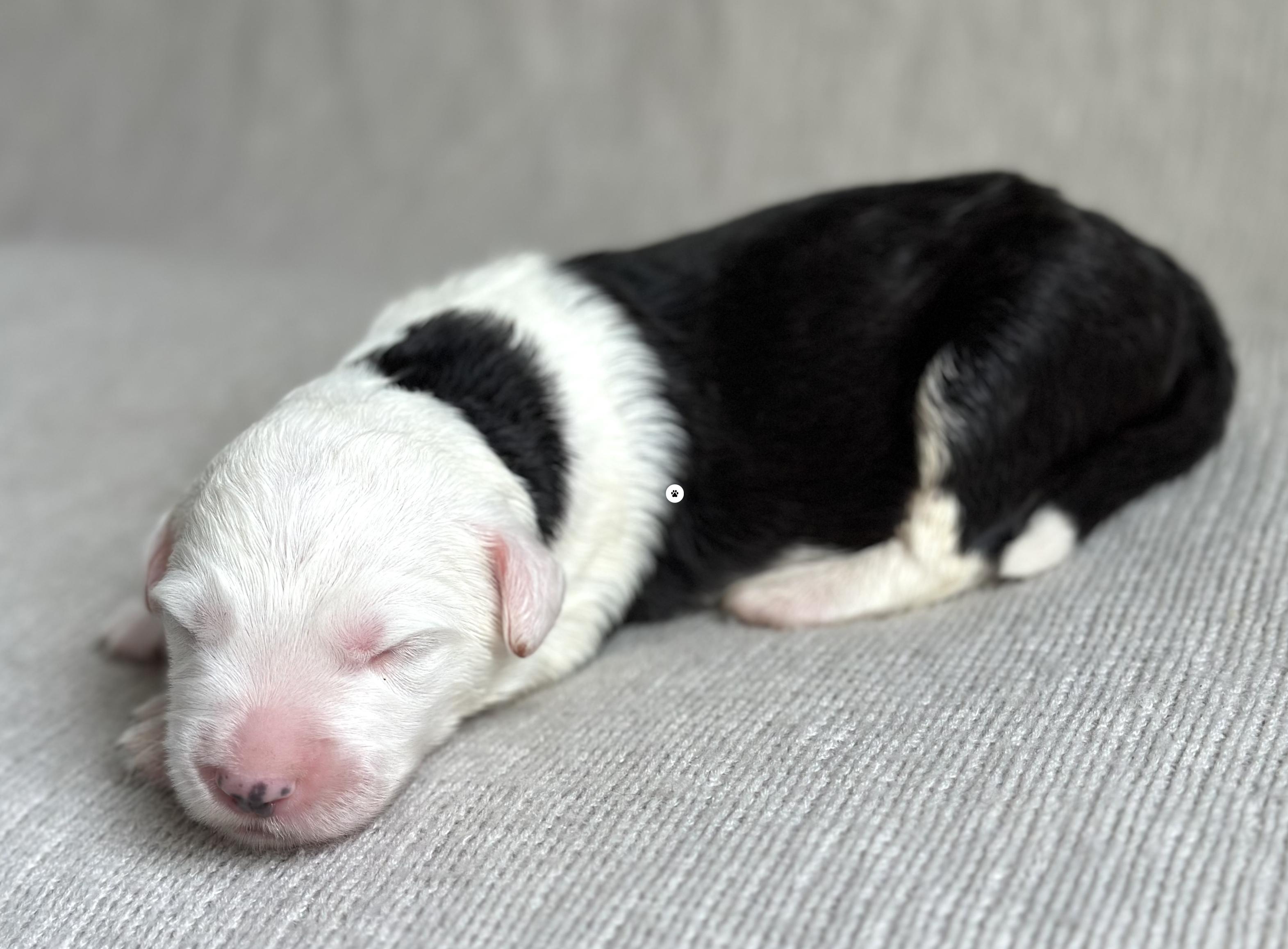 Cali is a female Sheepadoodle. Carefully selected as a great representative of her breed, Katherine decided to make her part of their program. Katherine has passed Good Dog’s screening process, which involved a review of their breeding practices, environment, and the mental and physical health of their dogs.