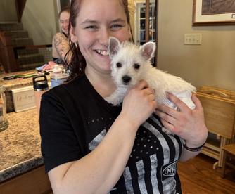 We recently got Lou from Cricket Hill’s Westies and could not be happier! Raeann was kind, responsive, and answered all the questions I had. She shared updates and made me feel so comfortable within the weeks leading up to bringing Lou home. Both Raeann and her daughter Rachel truly are great with the pups they have!