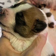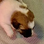 Eyes are opening , nose pigment started to change, ear flaps unfolding at two weeks old Nov 1 st 🐶😊