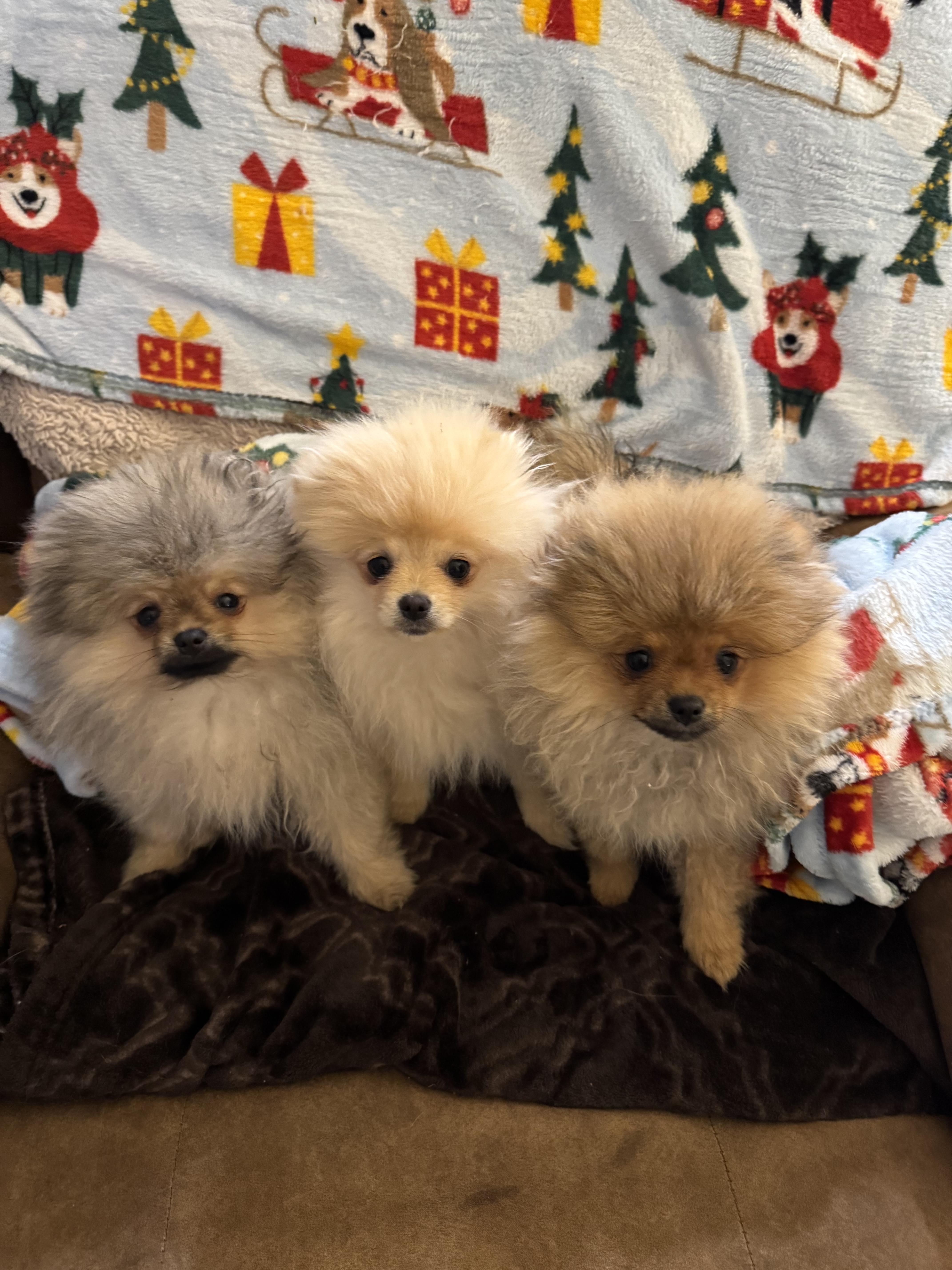 Beautiful Pomeranians! I purchased two pomeranian puppies (brothers) from Michelle. They arrived in perfect health and they continue to amaze me everyday. They came with some potty training experience, were well-socialized, stunning in appearance, and a very loving nature. They had to be flown into my town by plane since they were on the other side of the country. That process was extremely easy and went well, also. I highly recommend her as a breeder and would buy from her again if I could.