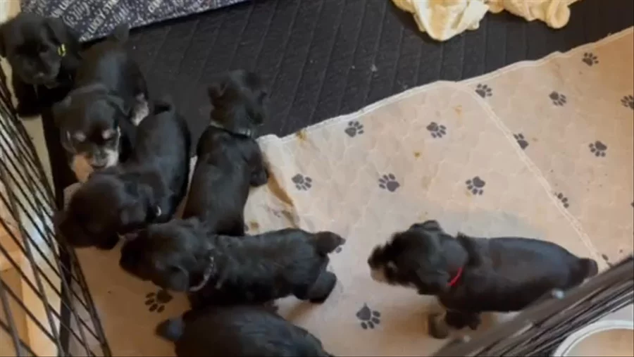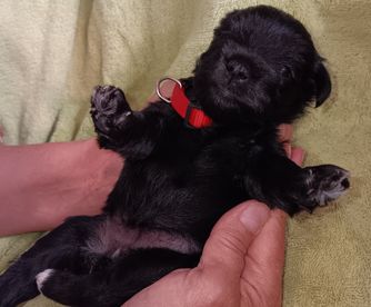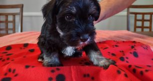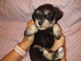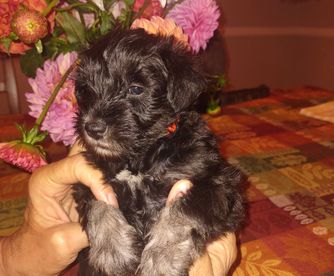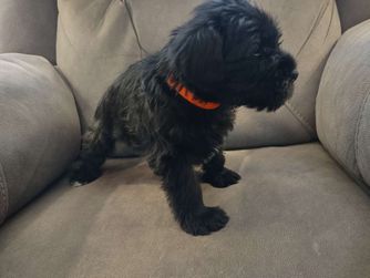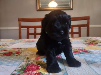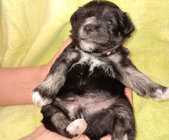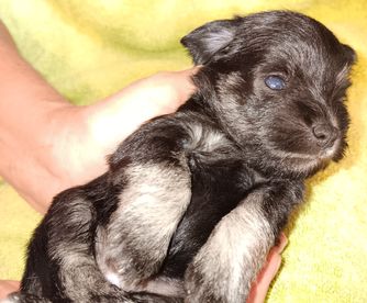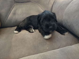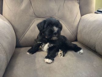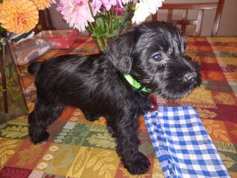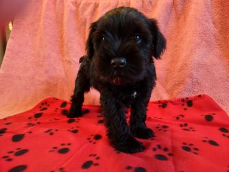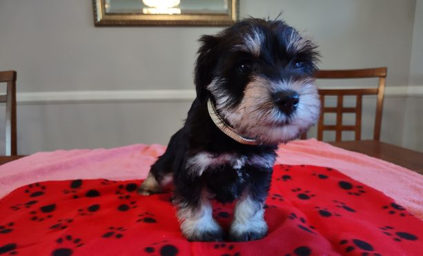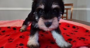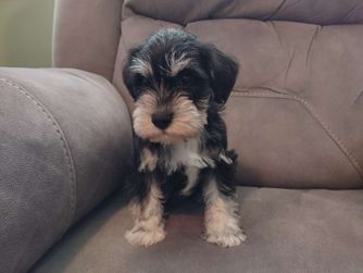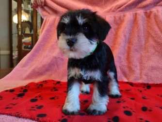 Our puppies include salt and pepper, black and silver, and black. Colors will vary depending on the parent dogs.