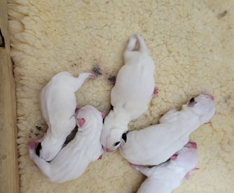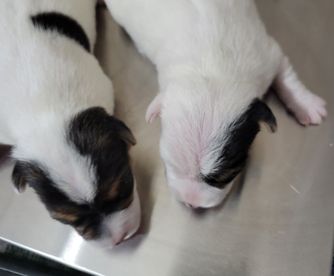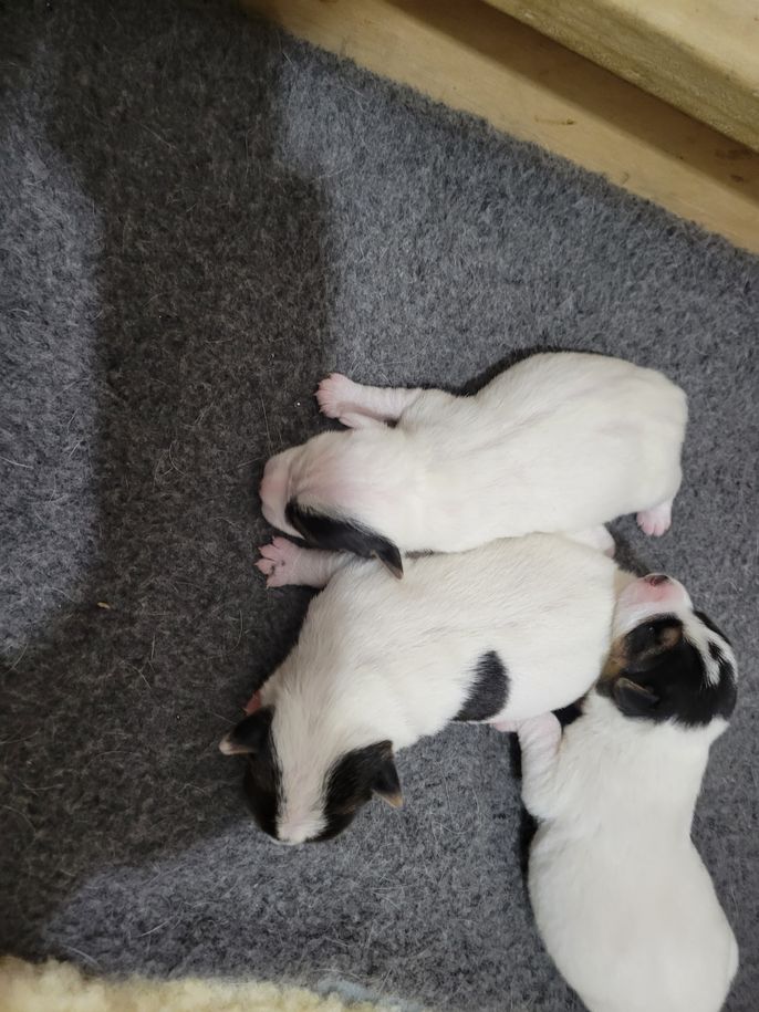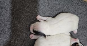 Our puppies include tan and white and black and white. Colors will vary depending on the parent dogs.