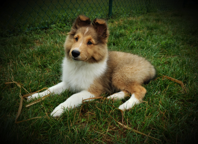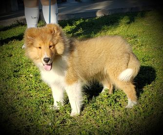 Our puppies are sable and white. Colors will vary depending on the parent dogs.
