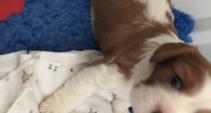 Our puppies are blenheim. Colors will vary depending on the parent dogs.