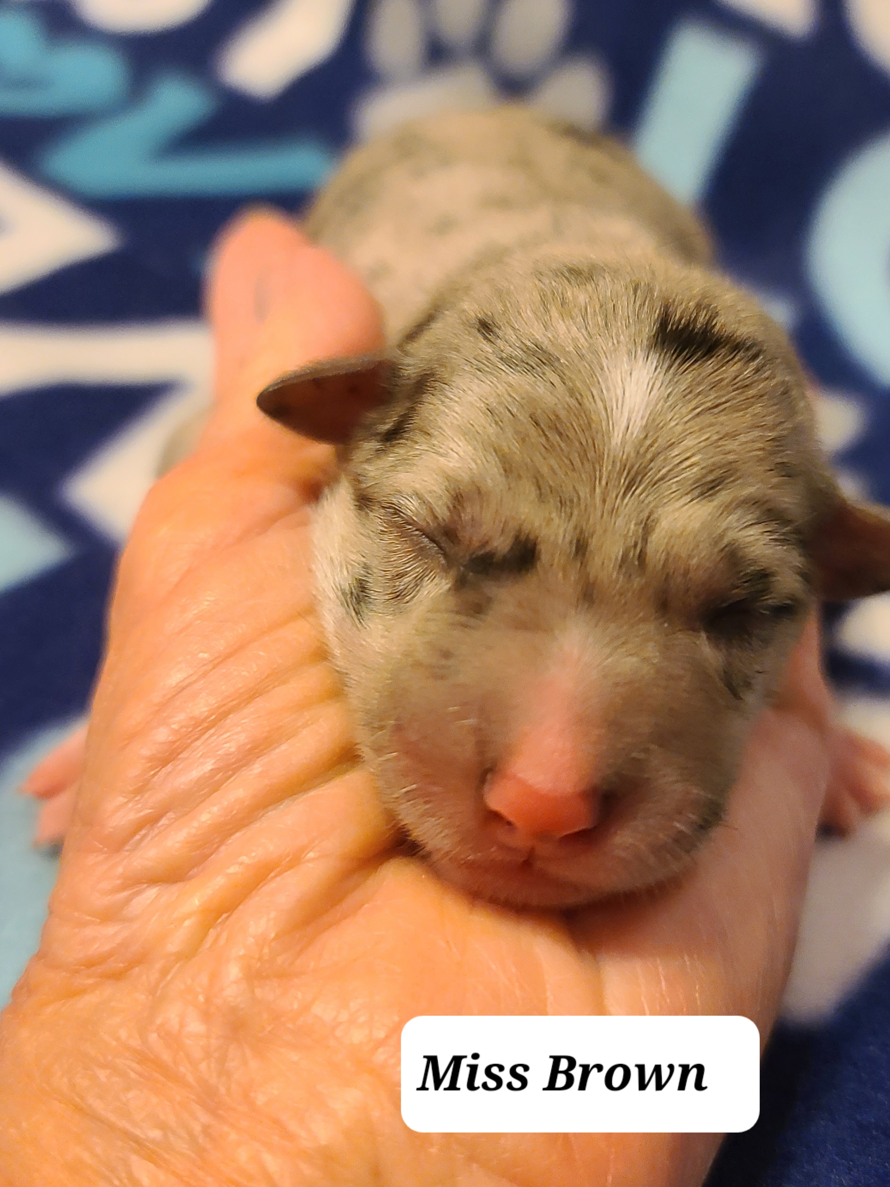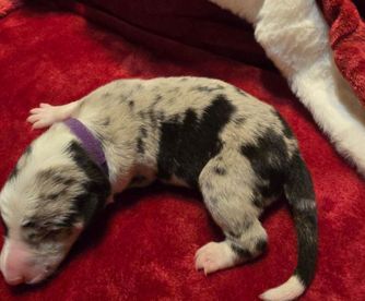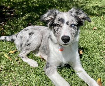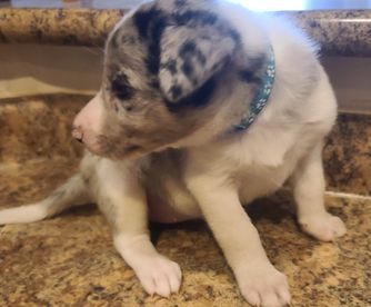 Our puppies are blue merle. Colors will vary depending on the parent dogs.