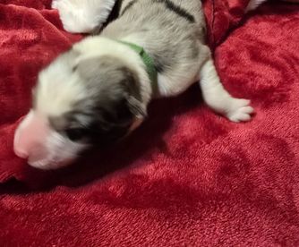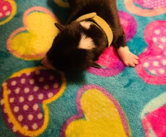 Pups are very playful, funny, using litterbox. They free feed so no matter the schedule at their new homes it will work. Received their microchips. Go home bags all ready with toys and blankets.