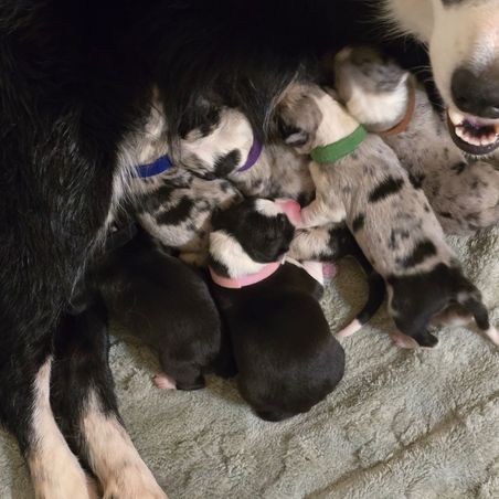 My dogs are genetically tested, with easy going temperaments, healthy dogs. This helps assure puppies are smart, agile, healthy and beautiful. They are cuddle bugs who love to work or play, but quiet easily, happy to lay indoors near you.