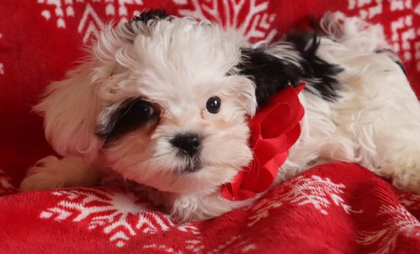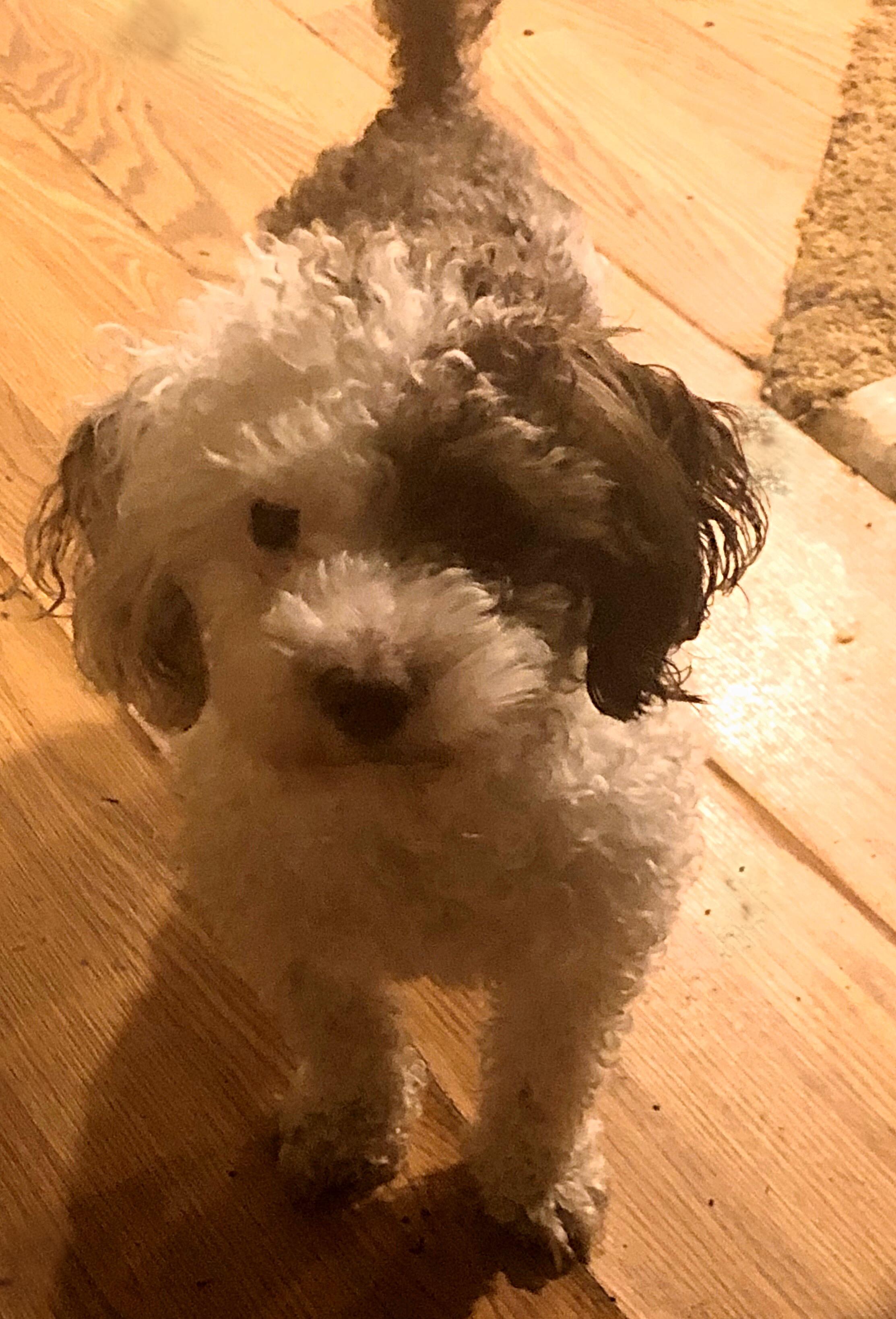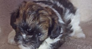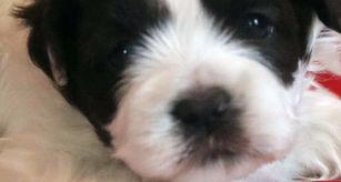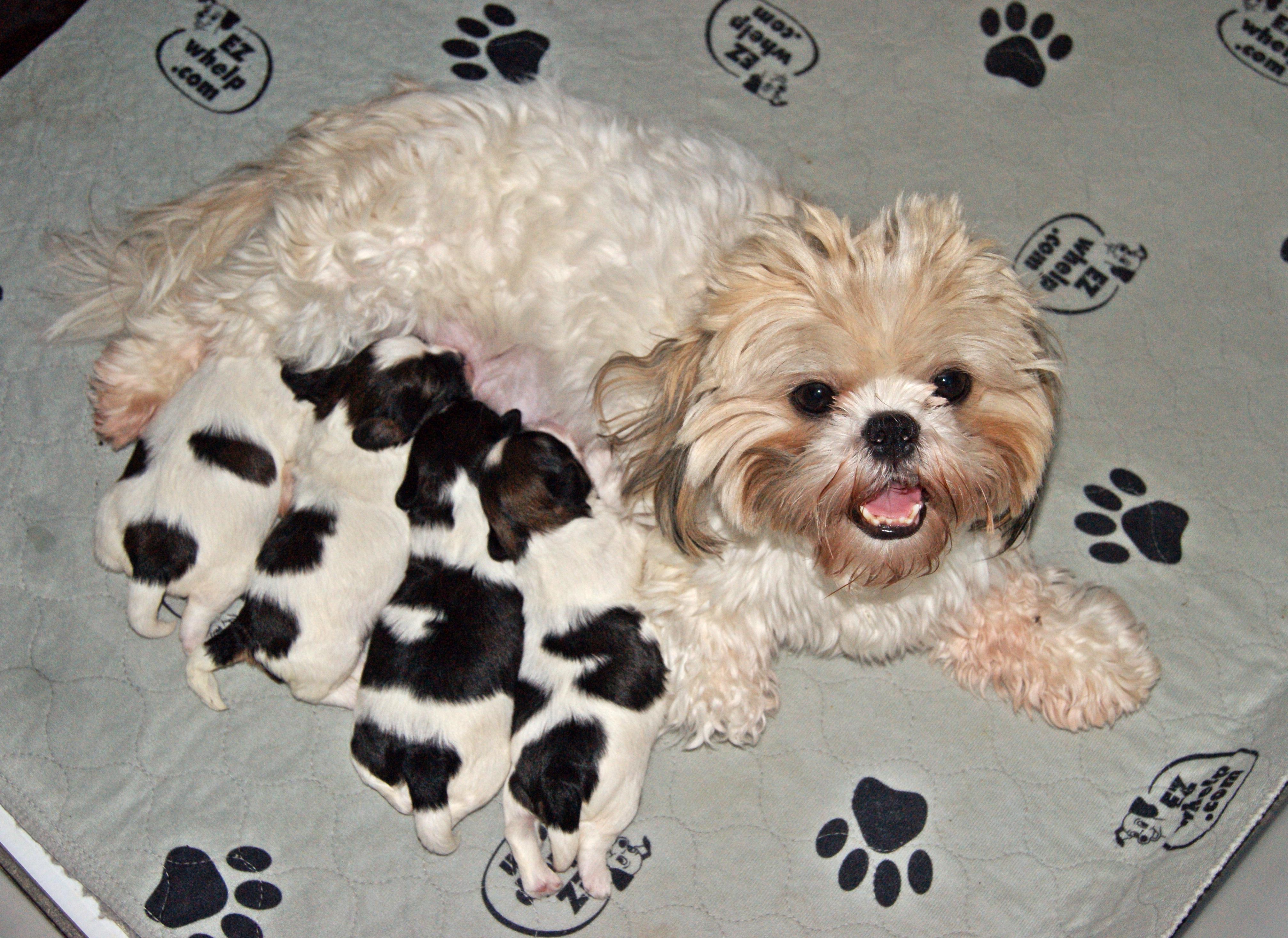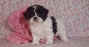 It was Love at first sight when my Son who lived in Michigan, came down here to Medina, Ohio to assist with a large Garage Sale. No one knew that along with him was a Truly Precious and Tiny Female Shih-Poo. Just 10 weeks old and was All White except a Black Patch over her Right Eye. I fell in Love with her immediately. I began reading everything about Shih-Poos and realized how amazing it would be to breed out of my Home and provide a great addition to countless Families.