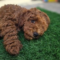 Bella is our 2nd mom. She is the daughter of Leia who use to be one of our dames. We since then retired. She is about 15 lbs and is Carmel red in color. She has such a loving personality and is so affectionate. Very smart and playful. She has been throughly vaccinated including microchipped, dewormed, and rabbi shot. and complete vet check. She had 6 puppies her 1st litter and her 2nd litter she had.