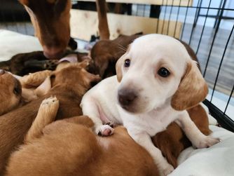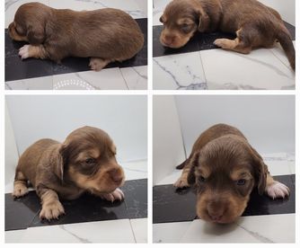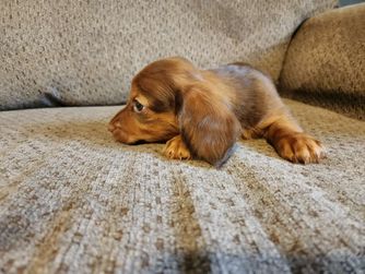 I raise all my pups in my home. We have 1 litter a year. I provide all my pups with love, care and one on one time. My Dachshunds are all health/DNA tested to make sure we are producing healthy pups. All pups are vet checked, vaccinated, microchipped and come with a 1 year guarantee. I start to potty train the pups before they leave. They will be socialized before leaving my home. I keep them until they are 10-12 weeks old.