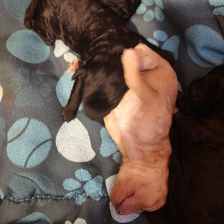 Here is our black male puppy. He is 5 weeks old today. He is available to the perfect home. He is champion sired and both parents are chic certified.