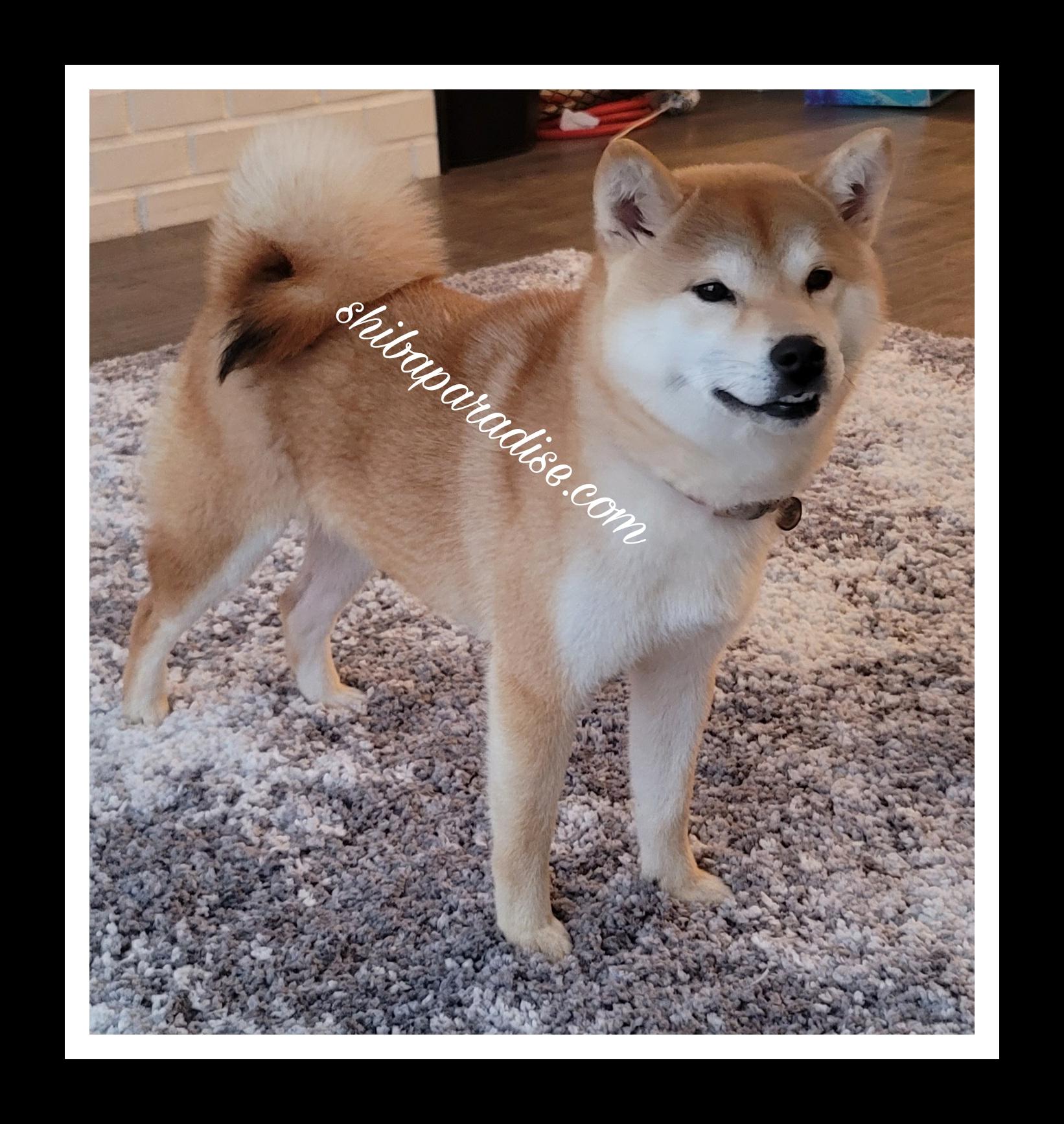 Toki is an outstanding breeding prospect, boasting a remarkable lineage that reflects the finest qualities of the breed. She has a well-balanced temperament—confident yet affectionate, intelligent, and eager to please. With a striking black and tan coat, a plush tail, and a well-proportioned build, she exemplifies the Shiba Inu’s beauty and grace. Her pedigree is filled with exceptional bloodlines, ensuring strong genetics and desirable traits. Playful, social, and full of spirit, she carries the perfect blend of independence and loyalty, making her an excellent foundation for producing well-tempered, high-quality puppies.
