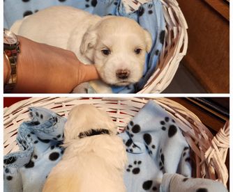 Bailey is quiet natured with a hint of attitude..A K C registered wavy coat with distinctive polkadot front socks..