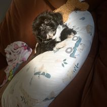 I got my sweet Bella from MayMay. The process was quick and smooth. She came with all her paperwork and a care package with food to get me started. I can tell she really cares for her puppies and want them to go to the best homes. Bella is sweet and wants lots of hugs. She even has checked on her. If Bella needs a playmate I would definitely be calling MayMay.