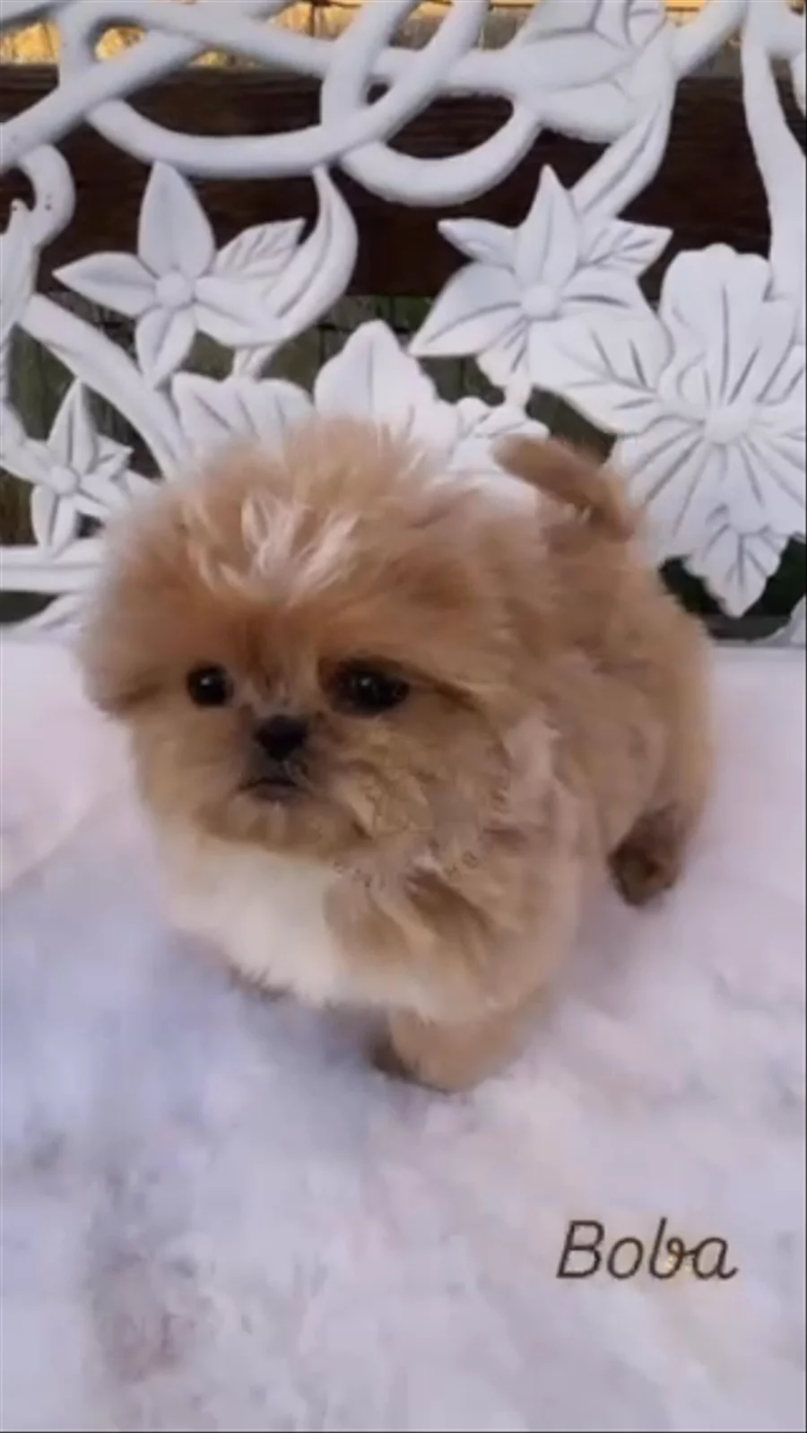 Sweet as Candy KANE 🐶❤️🔥 Gorgeous red and white tiny stud 👀 for his valentine! 🥰💘 Wide smoochie face, high nose, big round eyes. 👁️👅👁️ 5 lbs. Cobby body and short legs. 📍Tehachapi, CA. AKC registered and embarked tested. 🩸 A.I. 💉💦 only. PM 📩 for more info or on IG @ShihTzuCrue.