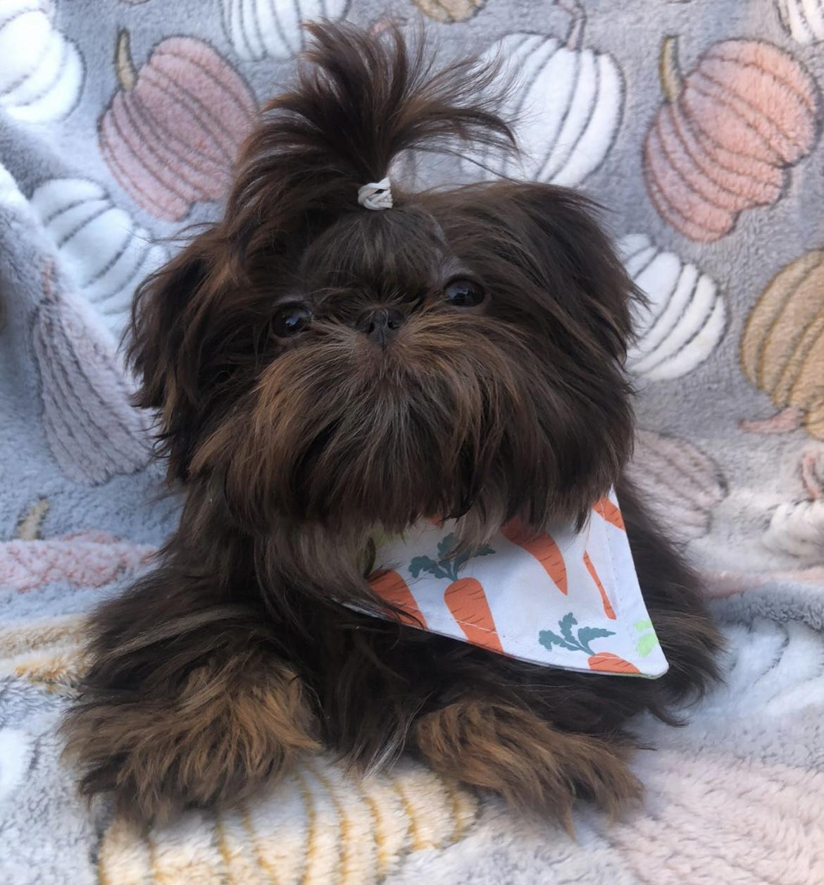 Moana is a female Shih Tzu. Carefully selected as a great representative of her breed, Maria decided to make her part of their program. Maria has passed Good Dog’s screening process, which involved a review of their breeding practices, environment, and the mental and physical health of their dogs.