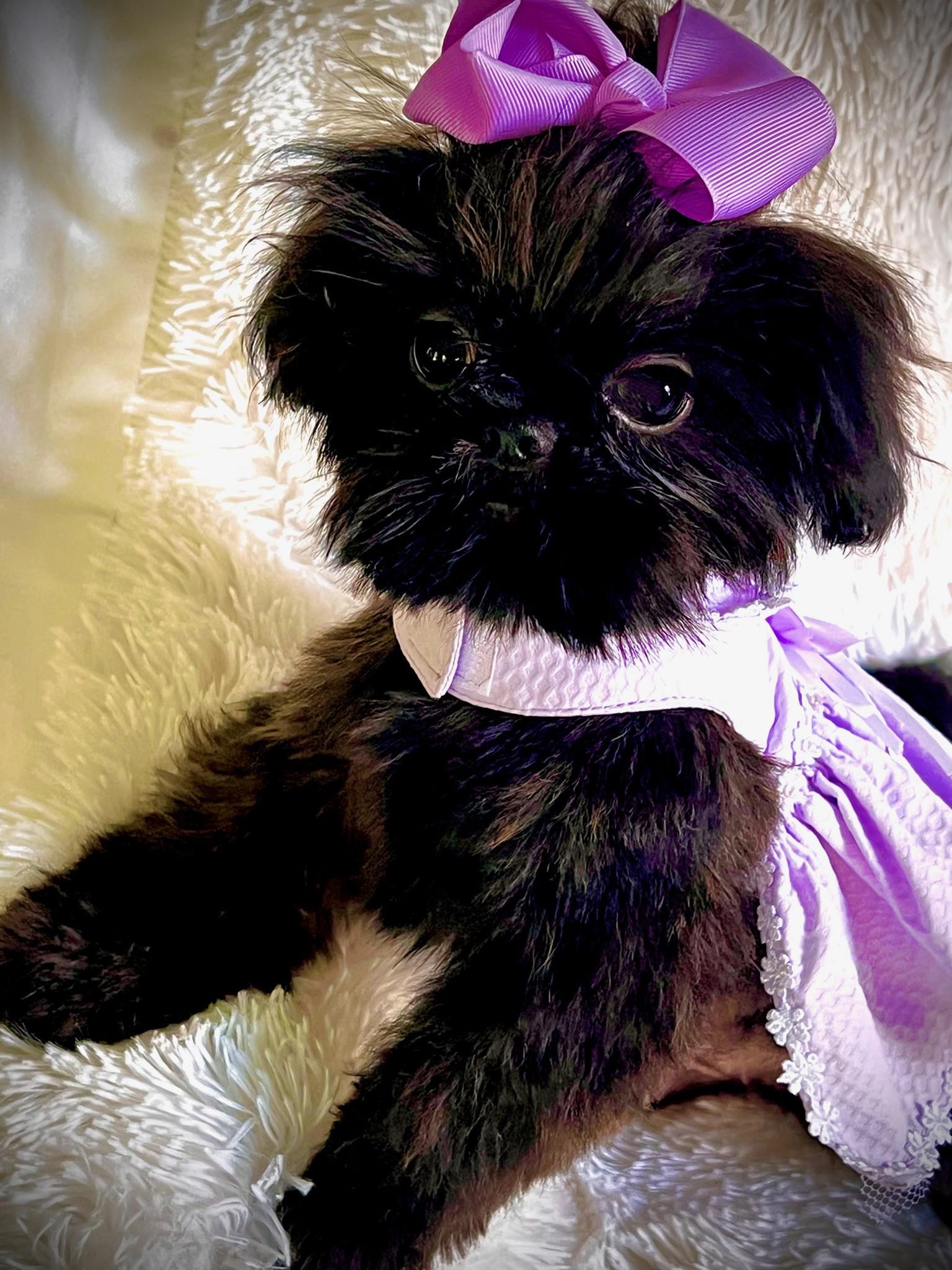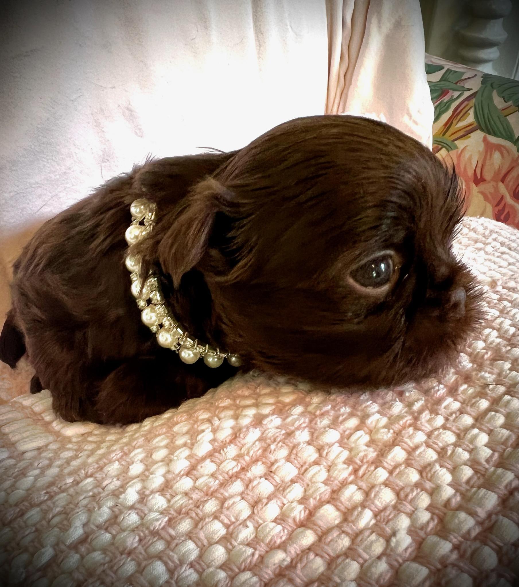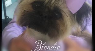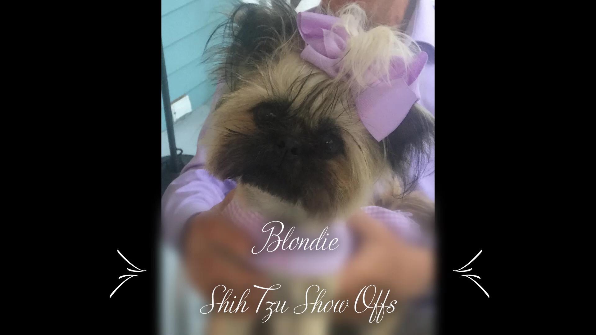 Honey Bunch is as her name describes. Sweet, loving and cuddly. She loves to snuggle, asks for nothing and is a willing companion. Beutifully built with a perfect bite her babies will be exceptional examples of the perfectly bred shih tzu. AKC Registered and DNA Health Tested for excellence in breeding.