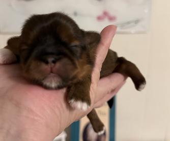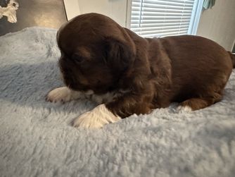 Our puppies include chocolate and tan, black, liver, and red and white. Colors will vary depending on the parent dogs.