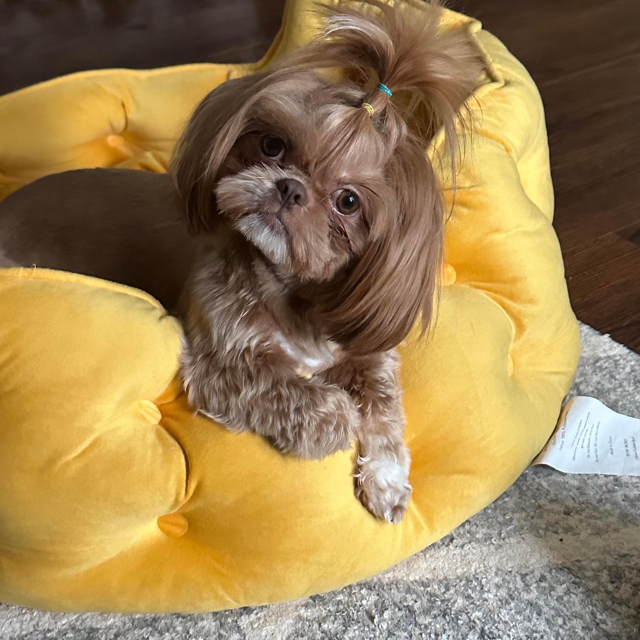 Mateo is a male Shih Tzu. Carefully selected as a great representative of his breed, Terri decided to make him part of their program. Terri has passed Good Dog’s screening process, which involved a review of their breeding practices, environment, and the mental and physical health of their dogs.