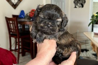 I purchased my Shih Tzu puppy from Stephanie back in March and it has easily been the best decision I have ever made. I love my sweet boy with my entire heart. He is so well behaved, loving, calm, and almost full potty trained at 5 months old! Stephanie was super responsive during the adoption process. She allowed me to come and visit the house months before Buckey was even ready to come home. We stayed in contact during the LONG awaited days before my baby boy was finally ready to come home. Stephanie answered MANY of my questions via text as I was a first time crazy dog mom. I am very thankful for Stephanie and her lovely sister. Thank you for helping me bring home my baby boy, Buckey!