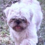 Mei’li' is Shih tzu Dynastys beautiful red and white shih tzu. This gorgeous girl was Shih tzu Dynastys second Shih tzu and first Dam. She came complete with AKC papers and a page filled list of an ancestor champion bloodline. The English translation for her Chinese name is 'beautiful scarlet girl'. Mei’li' is pronounced May Leigh. When I return home she runs in circles and makes little snorting welcoming noises.