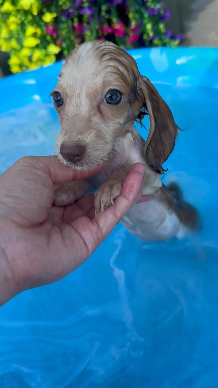 “My dapples and any dilutes are $2500. My other color combinations and patterns are $2300. All of my adult dogs are health tested with Embark before breeding. A $300 deposit is required to reserve the puppy of your choice once I start accepting deposits on a new litter. Puppies go home with their AKC registration papers and health records. They receive their first set of vaccinations, a physical exam given by our vet, and a fecal exam to check for any worms or parasites. They also get worming treatments every two weeks until they leave at 8 weeks old. They also come with a one year health guarantee on anything congenital. I start them on puppy pad training at 3-4 weeks old. They also come home with a Royal Canin puppy kit, a blanket with mom’s and sibling’s scent on it, puppy pads, treats, toys, and puppy waste bags. All deposits are the same regardless of color, coat type, or gender. My deposits are non-refundable unless something happens to the puppy before it goes home. In that case, I would refund the deposit or it can be applied to another puppy.”