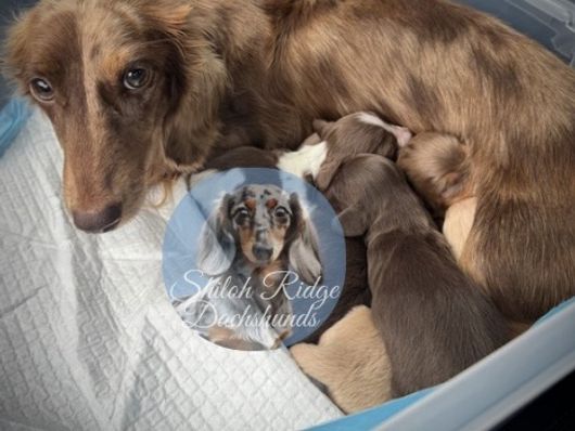 I have had dachshunds since I was 7 years old. My stepdad was the one who introduced me and my mother to the breed. We had our first dachshund together. She was a smooth coat red. Her name was Gretchen. We had one litter with her when I was in 4th grade and I fell in love then. I knew one day I wanted to have more puppies once I was older. Once I got into my twenties and got established with a house, I wanted to breed dachshunds in order to better the breed, by carefully selecting each parent, and health testing. I’m very selective on what dogs I want for my program. I also wanted to allow my children to enjoy and have the same love for dachshunds that I always did growing up. My oldest daughter decided after always being an animal lover, that she was going to school to become a veterinarian. My other 3 children love all of our dogs. They are socialized daily. I have a nursing license and worked on and off for almost 9 years. Now that I have my two youngest kids, I wanted to stay at home with them as much as possible. I decided to become a stay at home momma and dachshund momma too. Since I stay at home, I have all my time to devote to not only my family, but my dachshund babies too. Some of the puppies that I have raised now live in many states such as Florida, Mississippi, Alabama, Georgia, North Carolina, South Carolina, Virginia, Maryland, Arizona, Illinois, Nevada, Arkansas, Pennsylvania, Texas, California and many more states. All of us here at Shiloh Ridge Dachshunds love on and pre-spoil our babies before they go to their forever home. We are truly a Dachshund loving family.