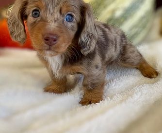 Remi is our gorgeous longhair blue and tan dapple. She is spunky and playful but is also the best lap dog. She loves sleeping in our bed and enjoys treats. She is AKC registered.