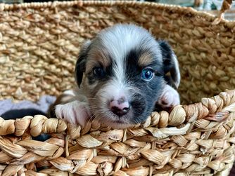 Our puppies include red & white, black & white, blue merle, black tri, red tri, red merle, red, and black. Colors will vary depending on the parent dogs.