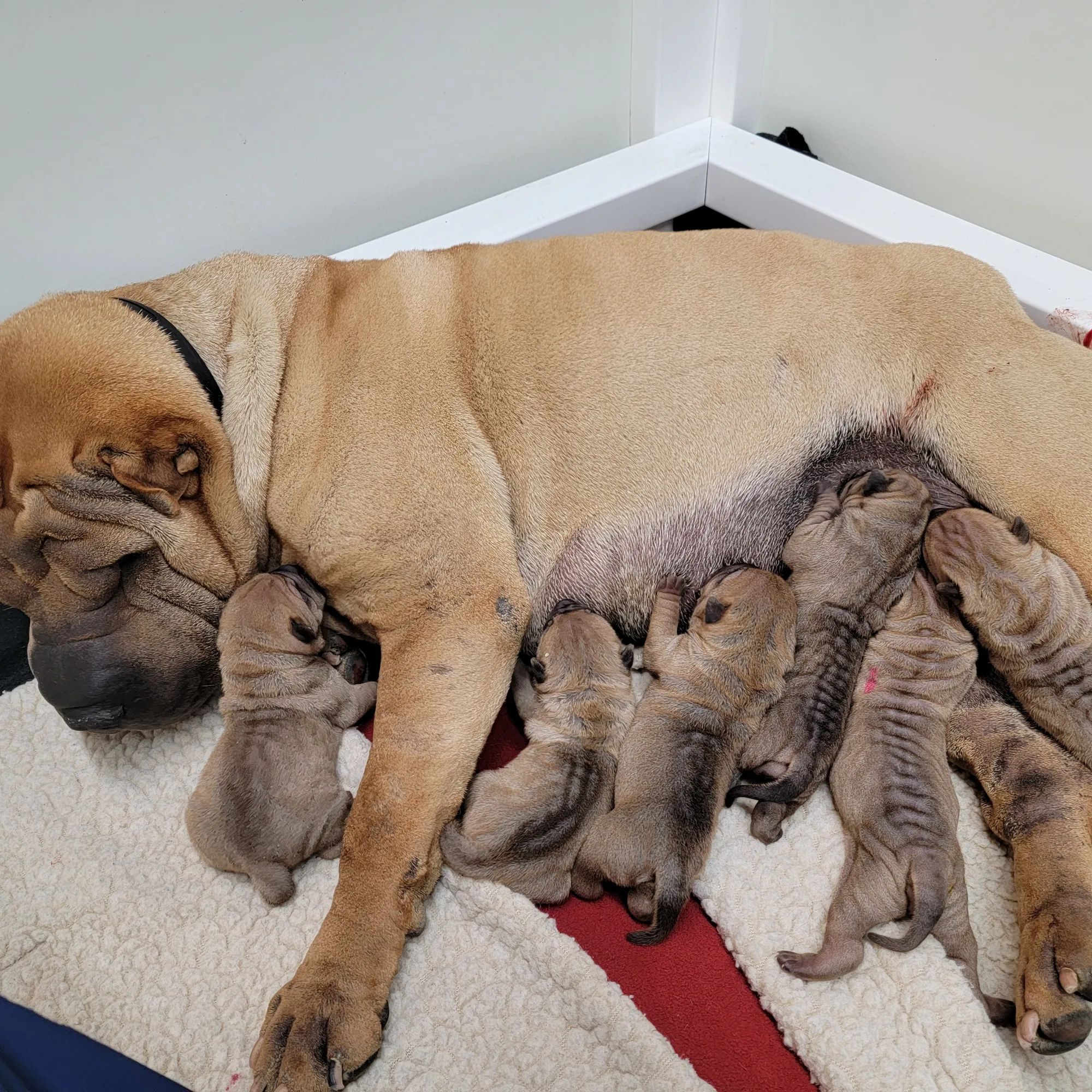 Smooch is a male Chinese Shar-Pei. Carefully selected as a great representative of his breed, Rebecca decided to make him part of their program. Rebecca has passed Good Dog’s screening process, which involved a review of their breeding practices, environment, and the mental and physical health of their dogs.