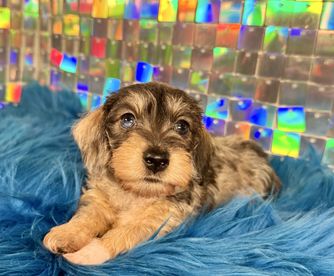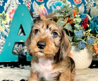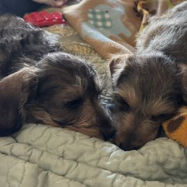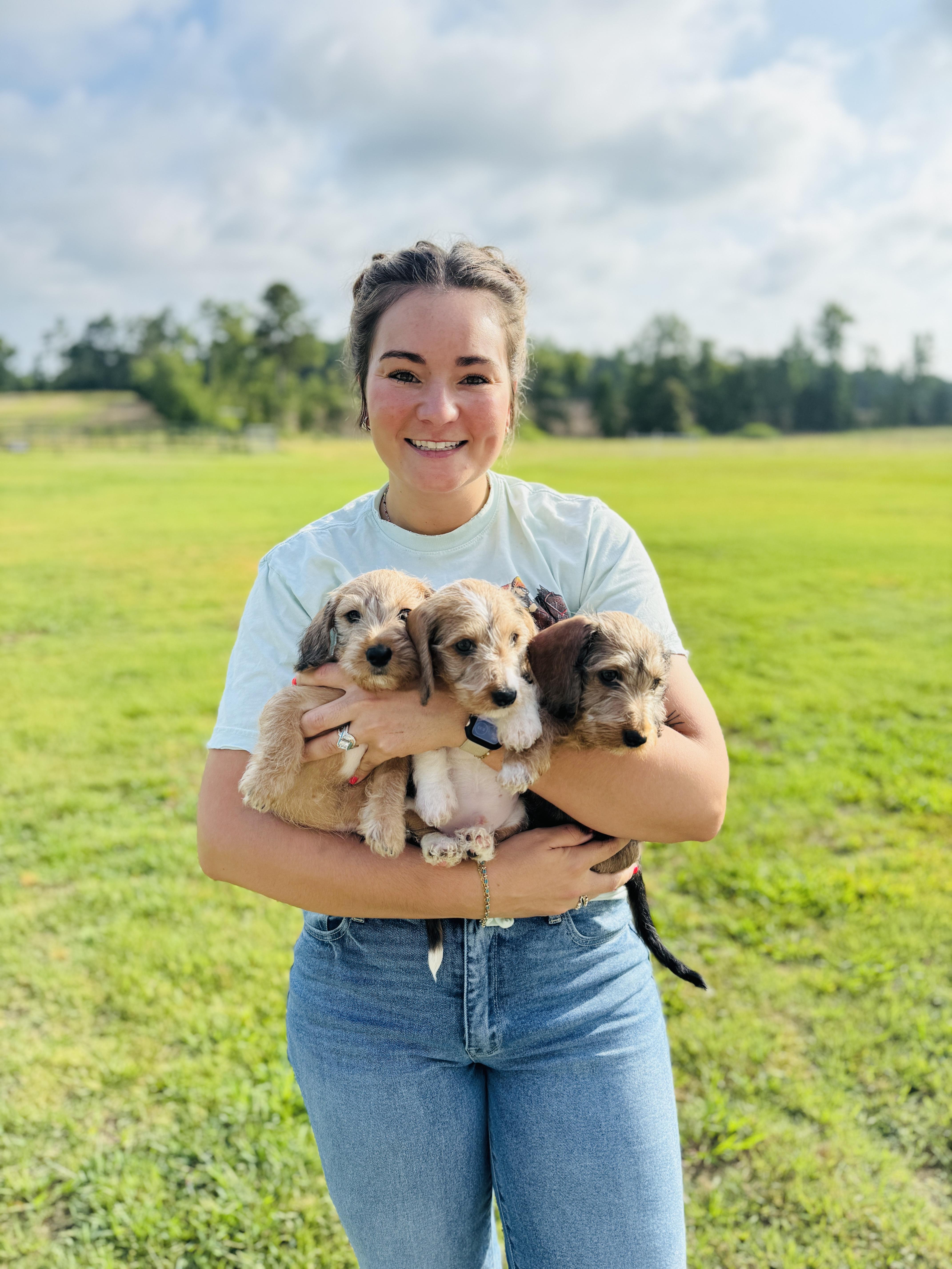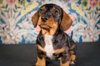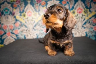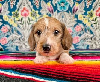 Our Dachshund puppies have wirehaired coats. Coat types may vary depending on the parent dogs.