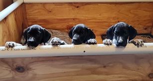 Our puppies include white and liver, liver roan, liver and white, black roan, and black and white. Colors will vary depending on the parent dogs.