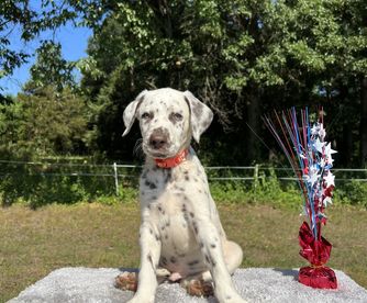 Hazel is a female Dalmatian. Carefully selected as a great representative of her breed, Pamela decided to make her part of their program. Pamela has passed Good Dog’s screening process, which involved a review of their breeding practices, environment, and the mental and physical health of their dogs.