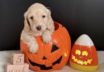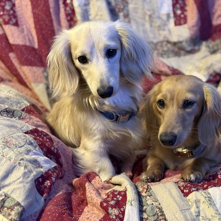 I breed my first dachshunds about 18 years ago and only had 3 litter with my one female and then about 10 years ago I saw the cream dachshunds and started my search for a good breeder. When I found one and got my first cream male the breeder and I became close friend and she became my mentor and helped me to start my own program. I have done all I can to research and make sure that I am improving the breed as I breed my dogs.
