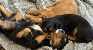 Our puppies include blenheim, tri-color, apricot, and black and white. Colors will vary depending on the parent dogs.
