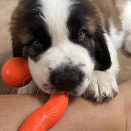 Vanessa was fantastic to work with! It was difficult to find breeders as a secondary communication for my parents and as a student, but she was very patient and helpful with the time needed to relay information back and forth. The weekly updates and photos of our puppy were very considerate and she was on top of everything from starter food to microchipping to pet insurance. My family and I would highly recommend Shoen Saint Bernards and couldn’t be happier with this experience!