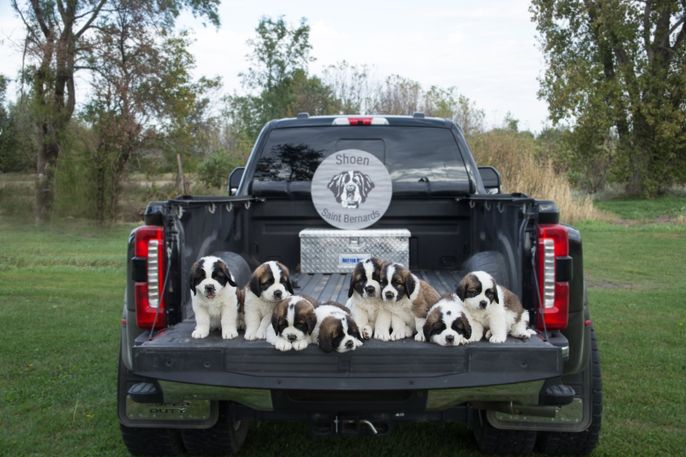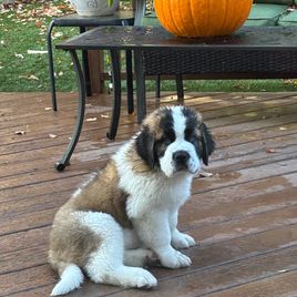 I'm Vanessa S., the breeder behind Shoen Saint Bernards located in Milroy, MN. Our mission is to breed the very best dogs that we can, to raise them with love, and to select their future homes with careful attention. Our puppies are raised with our family & our children. All puppies have been well socialized since day 1. We start potty training the puppies around 4 weeks old.