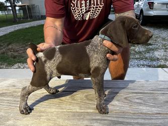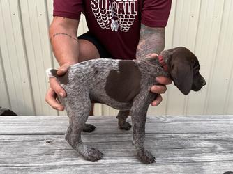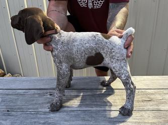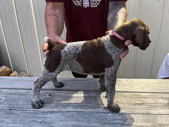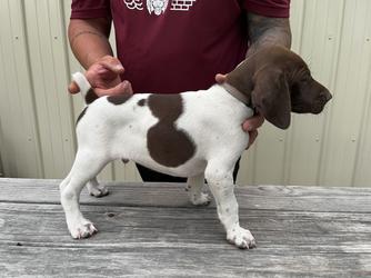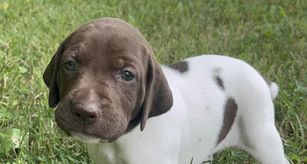 Our puppies include white and liver, liver roan, and liver and white. Colors will vary depending on the parent dogs.
